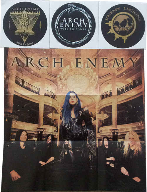 Manche wundern sich, warum die Gruppe so erfolgreich ist, nachdem sie einige Jahre mehr als Geheimtip galt. Das liegt weniger an den Fan-freundlichen Digipack-Inhalten, Aufklebern und Poster (Bild oben), sondern der weiten Metal-Bandbreite, die Arch Enemy abfrühstückt. Die Basis der Musik bildet wie immer sehr melodischer, typisch süd-schwedischer Metal, garniert mit Thrash- und Death-Metal-Elementen, Punkrock bzw. Hardcore-Passagen und amerikanischen Heavy-Klängen. Sowas ist natürlich extrem abwechslungsreich, aber kann auch irritieren, wenn zu viel unterschiedliche Stile durcheinander gemischt werden. Mich verwirrt und fasziniert seit jeher zugleich dieses klassisch-melodische Gitarrenspiel, für den Giuseppe Verdi headbangend aus dem Grab fahren würde, in Verbindung mit dem wilden Gekeife und Death-Metal-Rhythmik. Ein Alleinstellungsmerkmal? Auch auf diesem Album können sich die Yngwie-Malmsteen-Freunde unter den Erzfeinden über Geschredde-Duelle zwischen Michael Amott und Jeff Loomis freuen. Auch wenn die CD insgesamt ein bißchen zu viel auf Superhits gebürstet ist, verlässt sie das Laufwerk im Auto wohl kaum und arglose Nicht-Schnapsmetaller auf dem Beifahrersitz werden gnadenlos Archenemysiert. Damit sie's lernen.