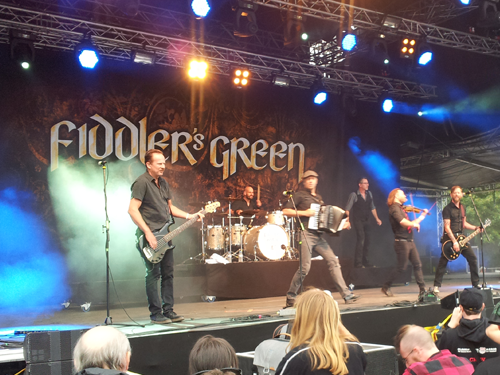 Bekannte Mannen aus Erlangen sind ab circa 19 Uhr dran. Fiddler's Green ziehen eine Menge Fans, vor allem Mädels, in ihren Bann. So richtig erklärt sich mir die Faszination der seichten und echt biederen Darbietung niemals. Und ich gucke die bereits seit 21 Jahren immer wieder mal an. Ich nehme an, "it's a Franken-Thing". |