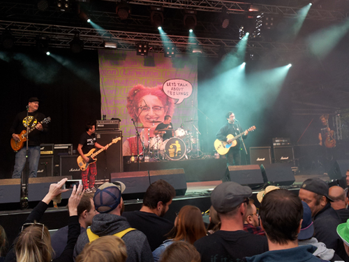 20:30 Uhr: Die letzte "große" Alternative/Punk-Band, die mir noch auf meiner Liste fehlte, war Lagwagon. Die Kalifornier haben mich nicht enttäuscht, aber ihr Stil ist etwas eigenwillig. Während die Mucke ordentlich abgeht und es thematisch um gesellschaftskritische Themen geht, singen Sänger Joey Cape und Bassist Joe Raposo mit diesen sanften Stimmen. Dadurch entsteht aber auch ein spannender Kontrast. Bombenauftritt mit etwas mehr Anspruch an diesem Konzertabend.